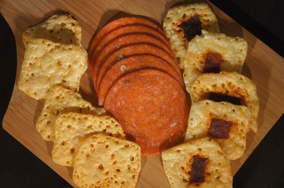 Really tasty lunchtime snack today. Pepperoni slices and cheesy crisps.