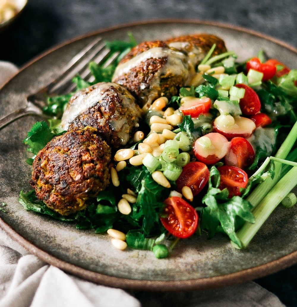 1 Combine all the ingredients for the tahini dressing in a blender or food processor and blend until smooth.