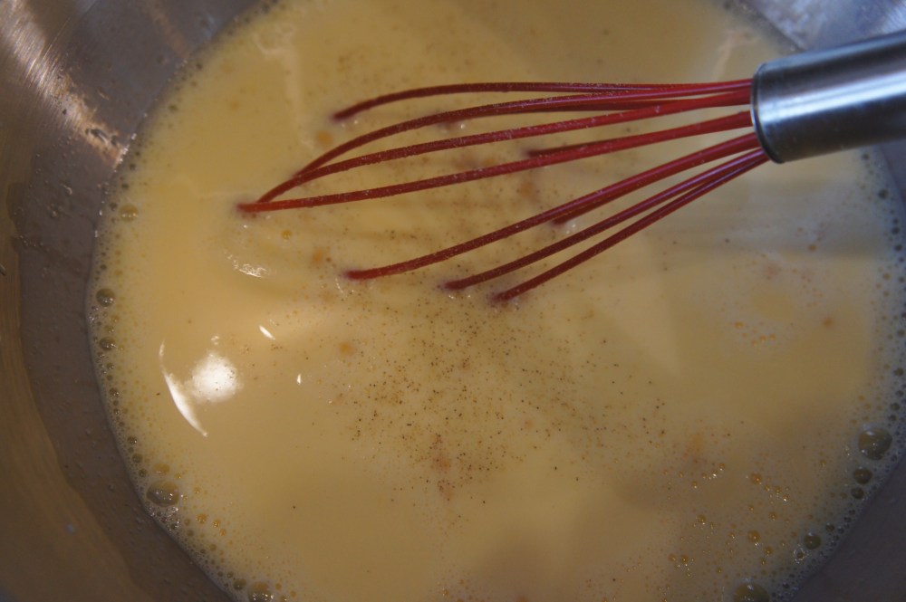 4. Beat eggs in a bowl then add milk while still whisking and add salt, pepper and mustard powder