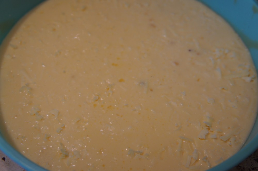 6. Pour egg and milk mixture over onions, bacon and cheese ( you may need at this point to spread them evenly across you quiche)