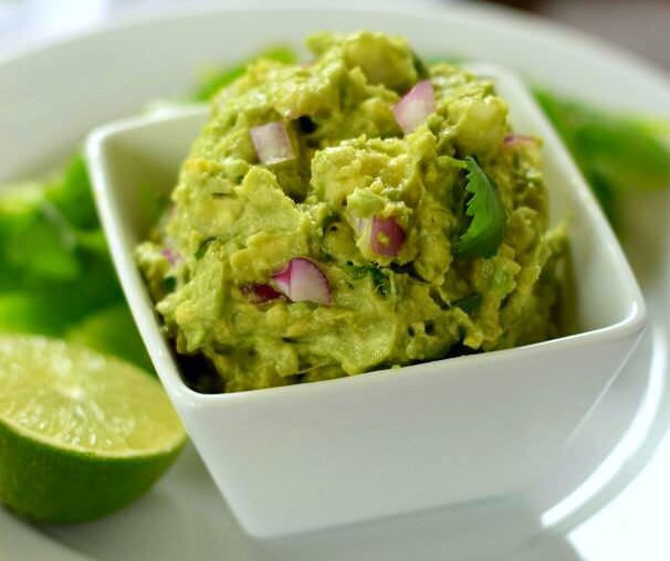 Make sure to use fresh rather than dried coriander. Dried coriander is just not very flavourful and makes the guacamole take on a grayish tint as well.