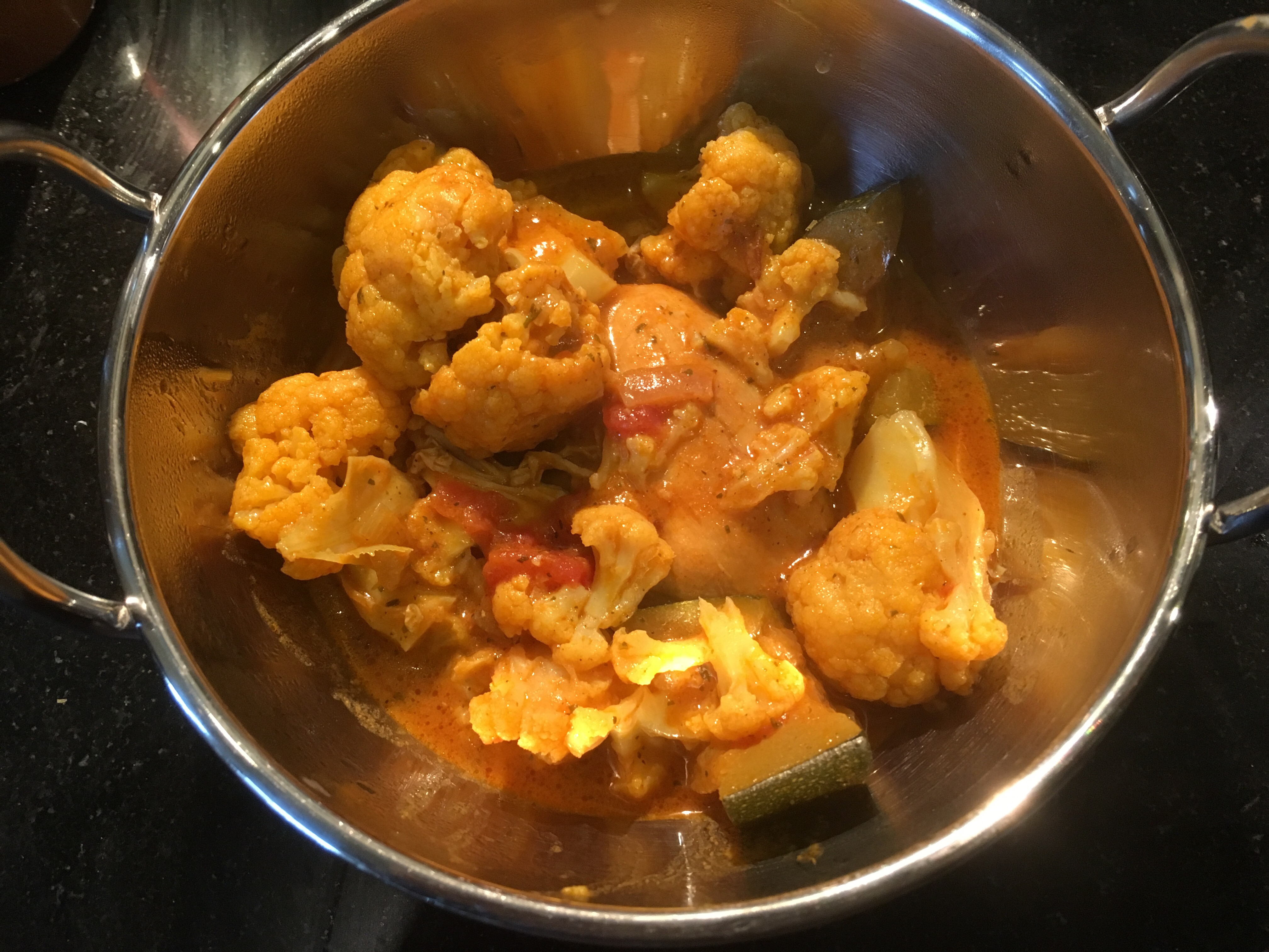 This delicious chicken curry with cauliflower and courgette is a great one pot meal and I love one pot meals… less washing up.