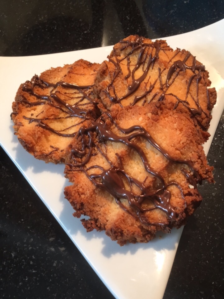 Sunday morning cup of coffee just begs for a biscuit(cookie) and these have the flavour of the coconut macaroons my mum used to buy for Sunday tea. With just 1.3g carbs each one makes them a great treat I think, also great for a packed lunches for children and allowable in UK schools as they are nut free.