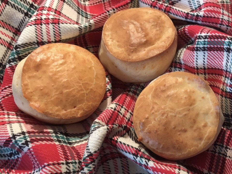 They taste good and have the texture of crumpets. My partner said they were a mixture between crumpets and English muffins and called them “Cruffins”