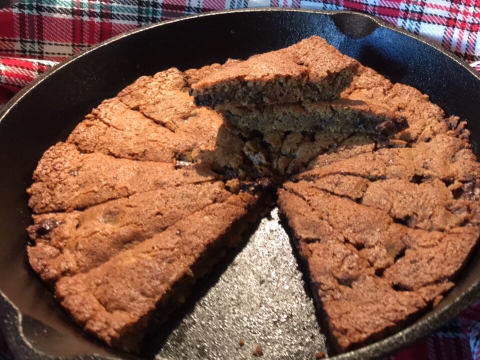 I saw a recipe for a skillet cookie but it had peanut butter in it and I personally consider peanut butter as something that was sent to punish us… the root of all food evil… as you are gathering I hate the stuff. It tastes foul, dries up you mouth and smells like a used cat litter tray. So I made my own recipe for a Skillet cookie.